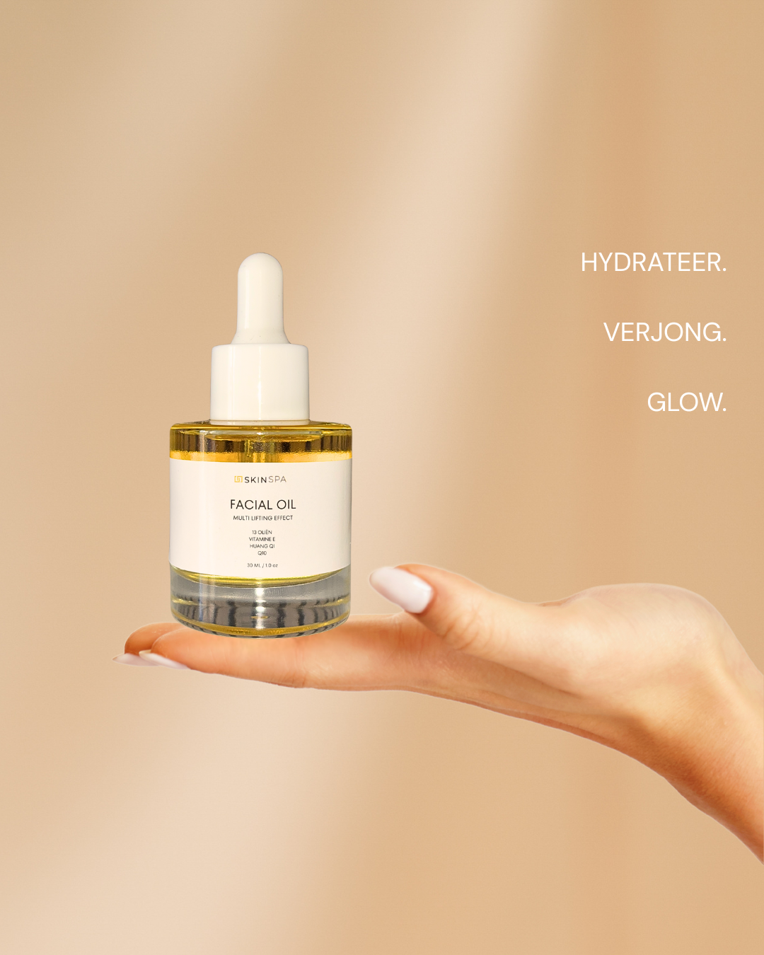 Verwen je huid met onze luxueuze Skin Spa Facial Oil, een unieke mix van 13 hoogwaardige natuurlijke oliën die de huid diep voeden, hydrateren en beschermen. In combinatie met vitamine E, Q10 en Huang Qi helpt de olie om de vochtigheid, elasticiteit en glans van je huid te verbeteren en maakt de huid gladder, steviger en jeugdiger. Speciaal ontwikkeld om je huid haar natuurlijke glans terug te geven, zonder een vettig gevoel achter te laten. Deze snel absorberende olie stimuleert de aanmaak van collageen en helpt tekenen van veroudering te voorkomen door rimpels en fijne lijntjes zichtbaar te verminderen. Het resultaat is een stralende en gerevitaliseerde huid.
